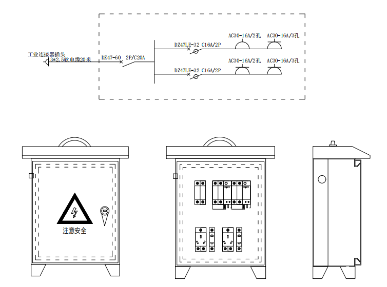 外观结构:临电设备是为施工临时用电需求设计,外观满足户内、户外通用的同时,结构满足在工程完成后拆除或重新安置。