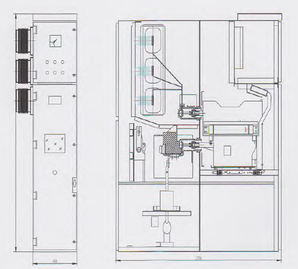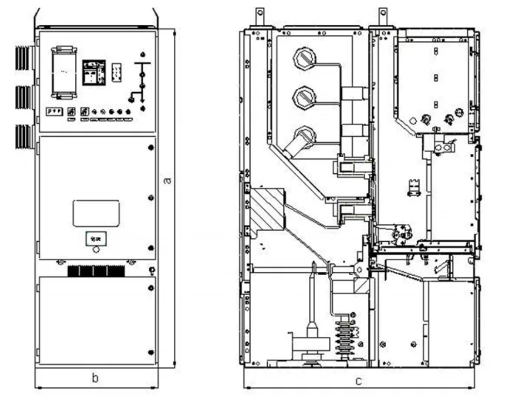 外壳为IP4X(最高可到IP43),隔离间,断路器室门打开时为IP2X
