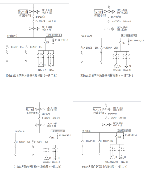 电能分配:内部安装进线刀熔开关,出线断路器,进线刀熔开关容量与出线断路器容量及路数满足配变容量和供电要求;